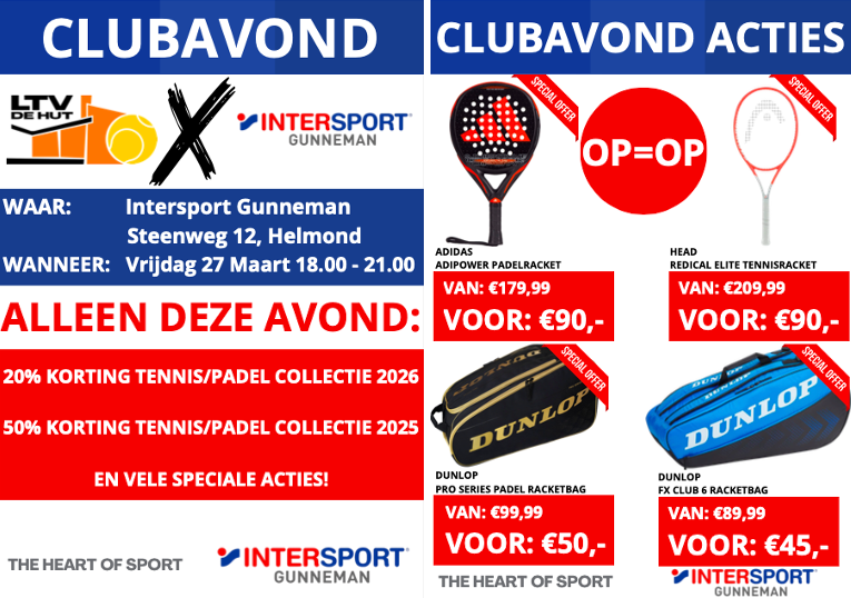 Dit is een speciale avond voor alle leden van LTV De Hut. Op deze avond zijn er speciale kortingen, exclusief voor alle leden: